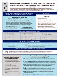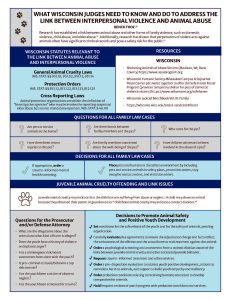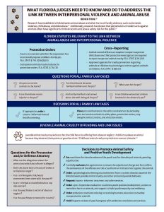 This tool serves as a supplemental resource to those existing bench cards. https://www.flcourts.gov/content/download/869062/file/Animal%20Abuse%20Benchcard%201.4.pdf