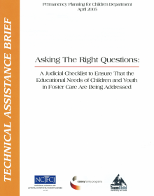 This Checklist and Technical Assistance Brief outlines the array of questions that may be asked in a courtroom with respect to the educational needs of children and youth in foster care. The Checklist is not proprietary—instead, it can and should be adapted to state laws and local practice so that it is most relevant to different jurisdictions and day-to-day practices.