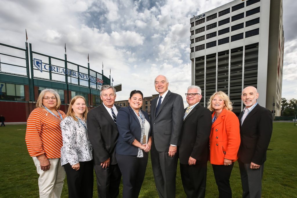 (from left to right): Hon. Sheri Roberts, Alcovy Judicial Circuit (Georgia), NCJFCJ Board Director; Hon. Katherine Tennyson, Multnomah County Circuit Court (Oregon), NCJFCJ Past President; Ron Zurek, Vice President Administration and Finance, University of Nevada, Reno; Joey Orduna Hastings, CEO, NCJFCJ; Dr. Marc Johnson, President, University of Nevada, Reno; Hon. Egan Walker, Second Judicial District Court (Nevada), NCJFCJ Secretary; Jeanne Karadanis, NCJFCJ Board Director; and Hon. Stephen Rubin (Ret.), NCJFCJ Past President