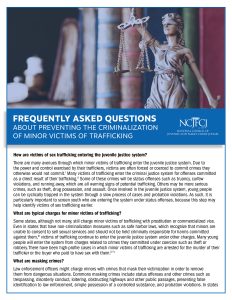 There are many avenues through which minor victims of trafficking enter the juvenile justice system. Due to the power and control exercised by their traffickers, victims are often forced or coerced to commit crimes they otherwise would not commit. Many victims of trafficking enter the criminal justice system for offenses committed as a direct result of their trafficking. Some of these crimes will be status offenses such as truancy, curfew violations, and running away, which are all warning signs of potential trafficking. Others may be more serious crimes, such as theft, drug possession, and assault. Once involved in the juvenile justice system, young people can be cyclically trapped in the system through a slow process of cases and probation violations. As such, it is particularly important to screen youth who are entering the system under status offenses, because this step may help identify victims of sex trafficking earlier.