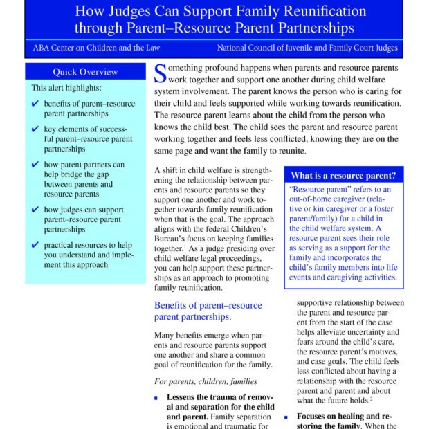 - how judges can support parent–resource parent partnerships; and