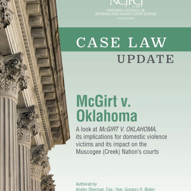 Recently, the United States Supreme Court, in McGirt v. Oklahoma, recognized the continued existence of the Muscogee (Creek) Nation’s reservation, and as a consequence, that tribal and federal courts have primary jurisdiction to prosecute citizens of tribal nations for crimes committed within that reservation. This publication examines that decision, and its potential impacts to domestic violence victims and states and tribal courts in their efforts to address domestic violence. It also looks at the impact that McGirt has had on the Muscogee (Creek) Nation’s courts.